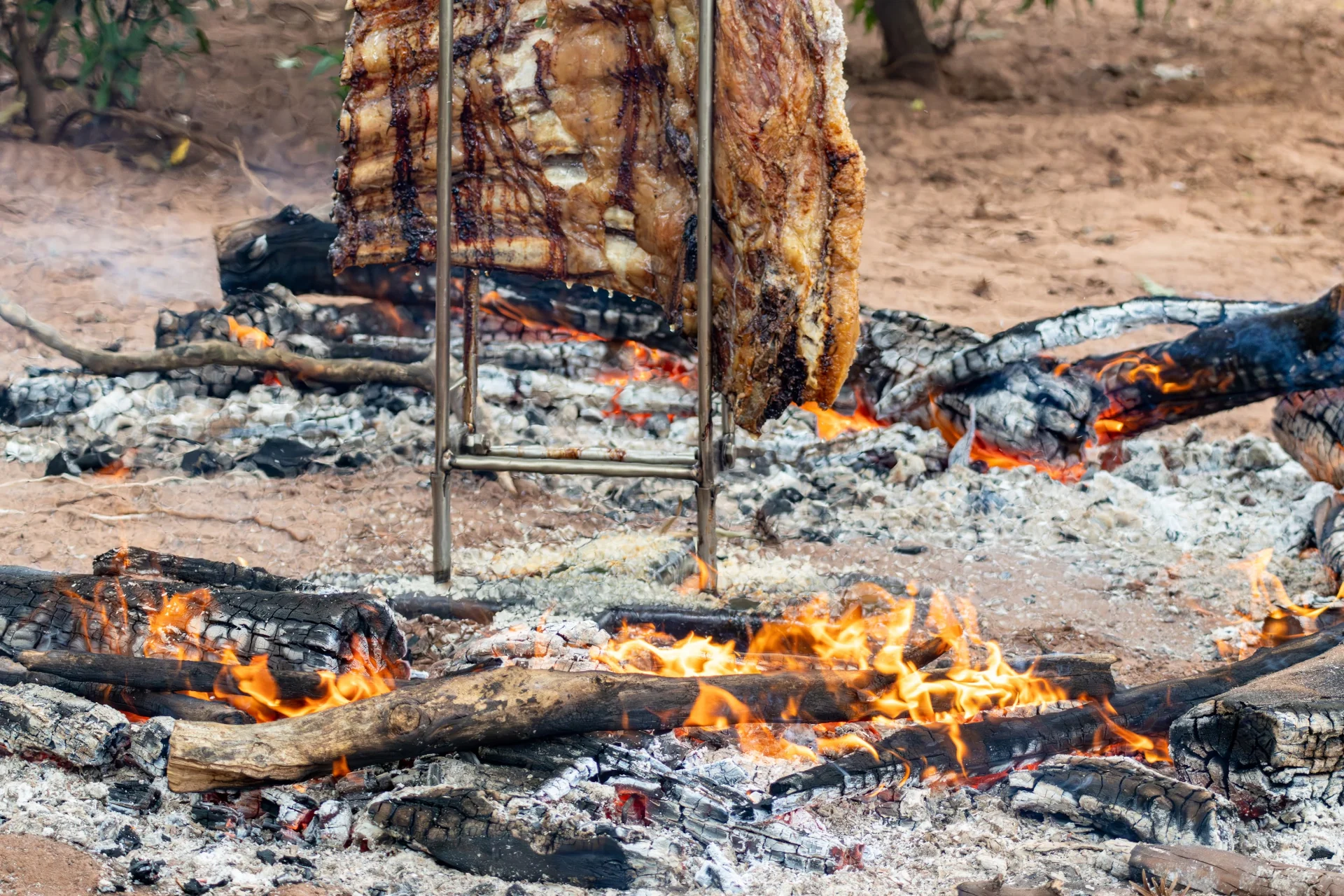 What makes it special is not just the final result, but the whole experience around it. While the meat cooks slowly, people sit around the fire, talk, drink some beers, and enjoy the day together.