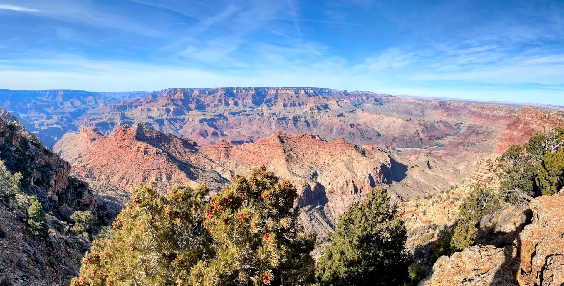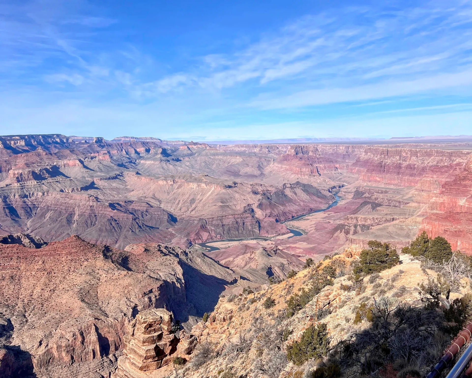 At Desert View, there’s a historic watchtower, but it was too crowded for us to go up. What we loved most about this spot was the view of the Colorado River, which isn’t as visible from the other viewpoints. The sight of the river winding through the canyon adds another layer of beauty to the experience.