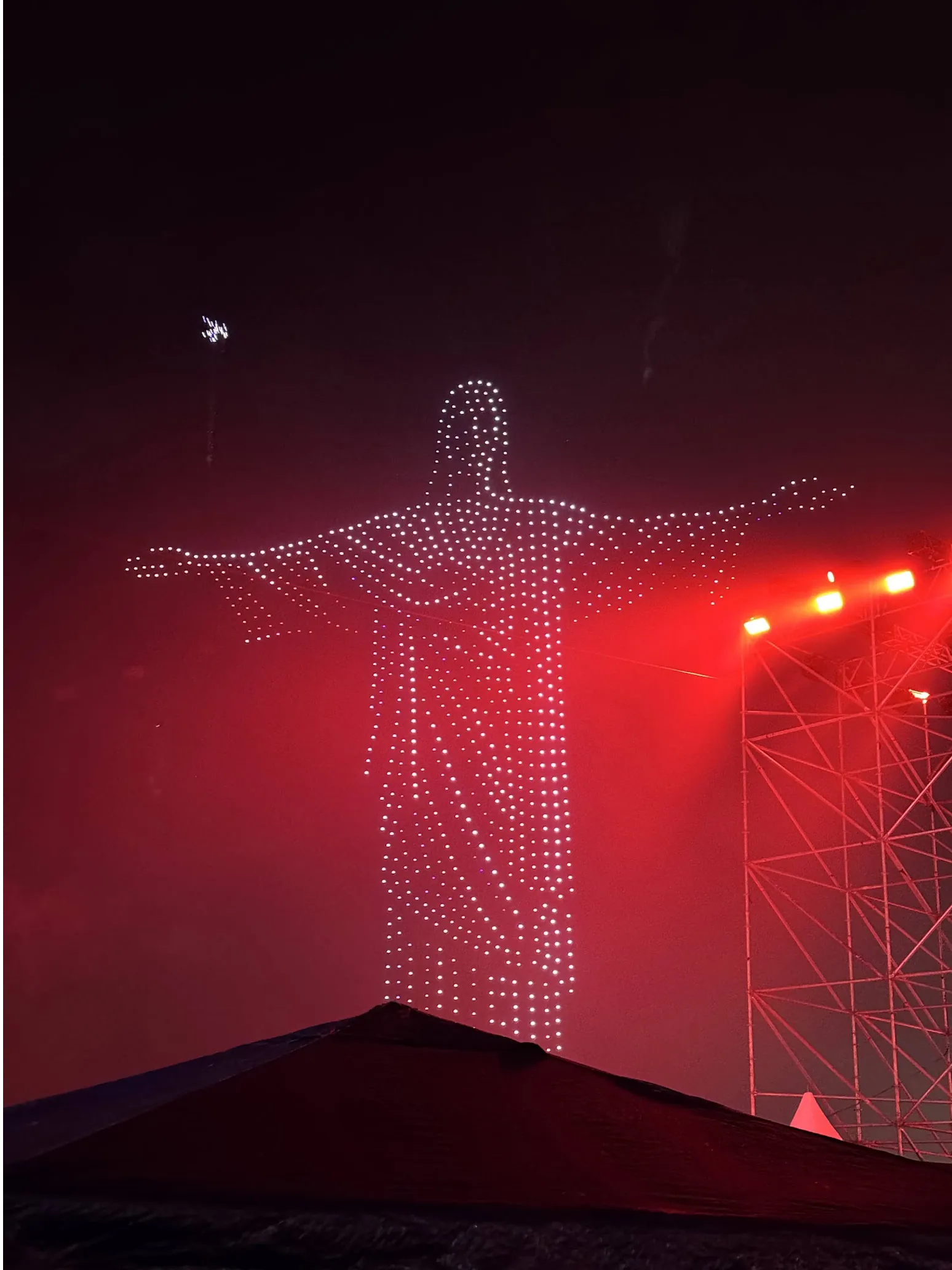 Drone show forming the shape of Christ the Redeemer